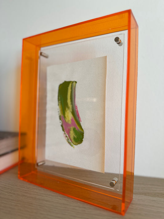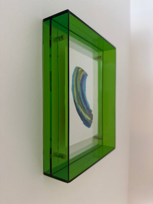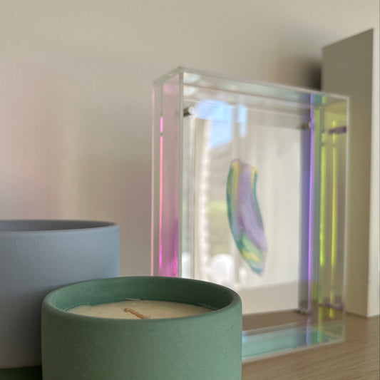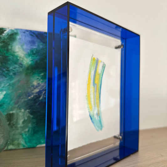 Each hand-painted mini artwork is framed in glowing acrylic glass, turning color into energy and art into a statement piece for your home.