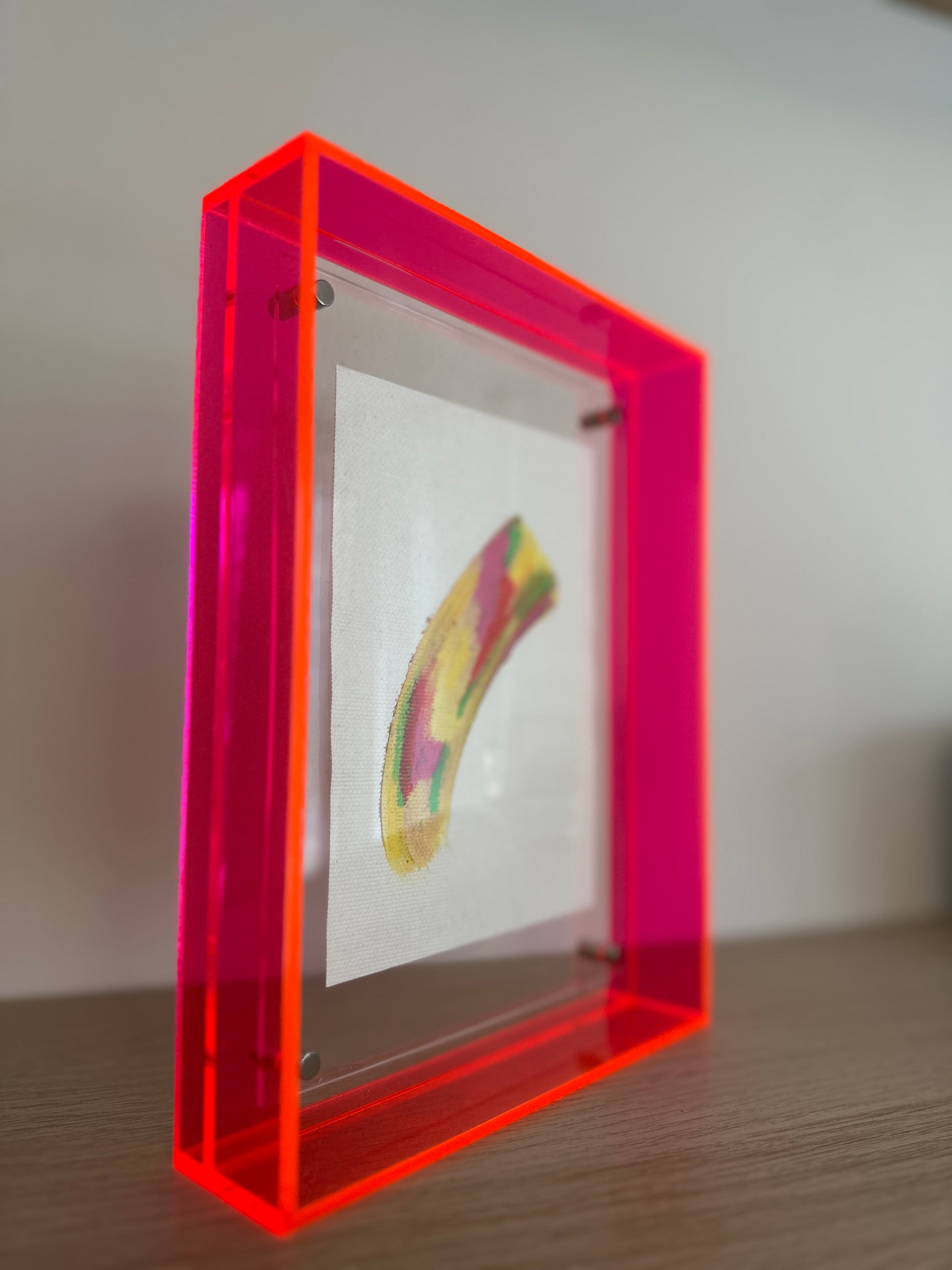 with a pink acrylic glass frame