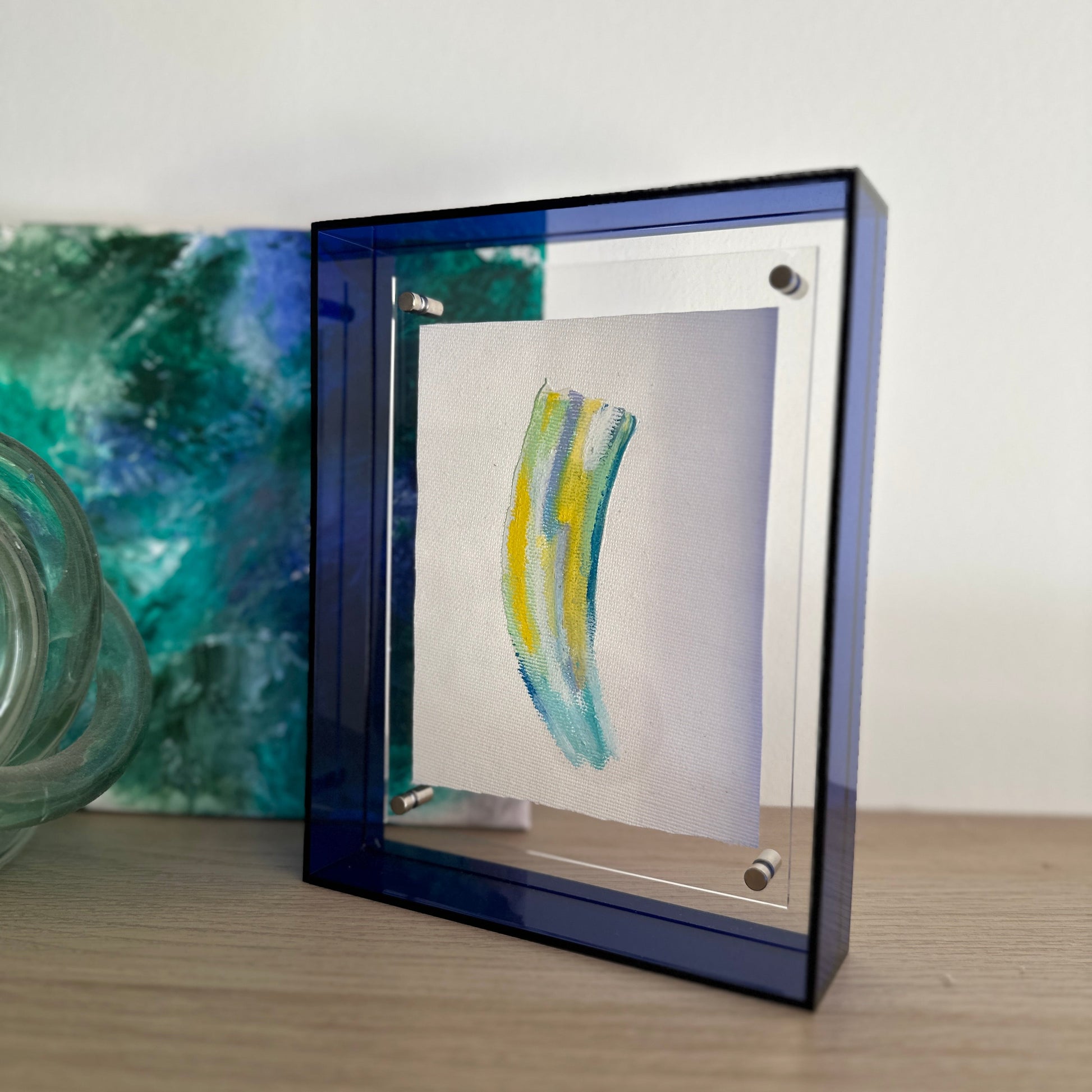 Neon Collection // yellow and green mini painting with an blue acrylic glass frame